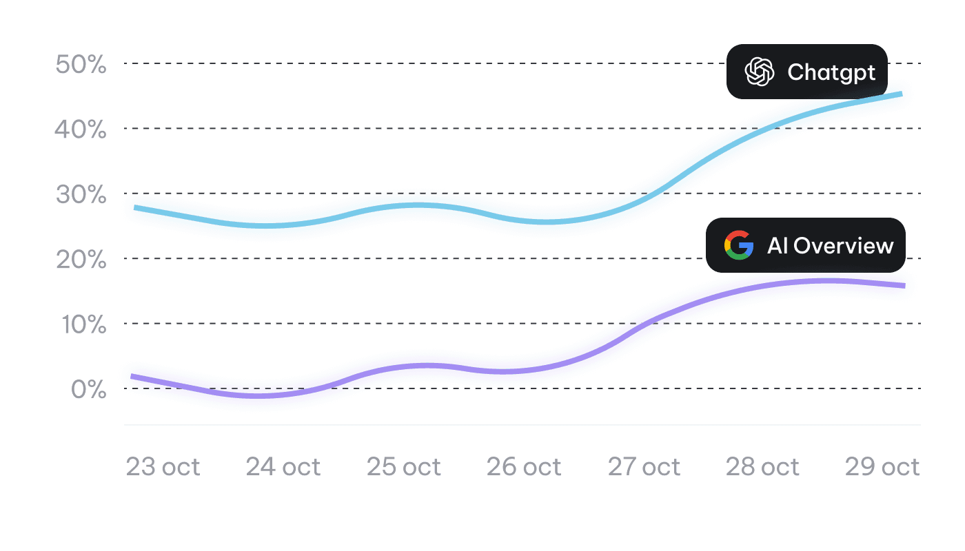 Over 50% of your customers already use ChatGPT and Google AI Overview to discover brands.