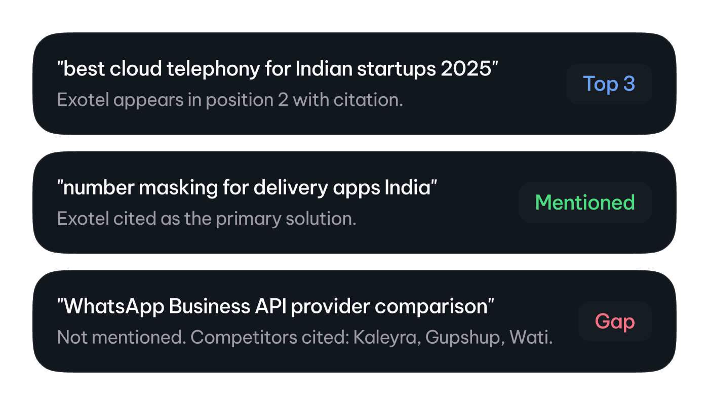 Track how your brand appears across answer engines, uncover visibility gaps and drive more traffic and conversions.